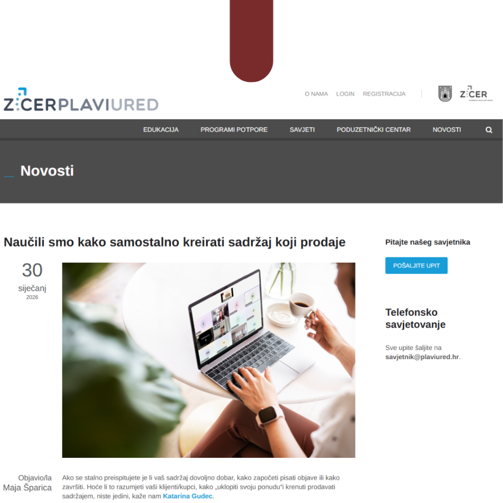 - Mjesečnu podršku za sadržaj (LinkedIn & Instagram objave, newsletter, blogovi)
